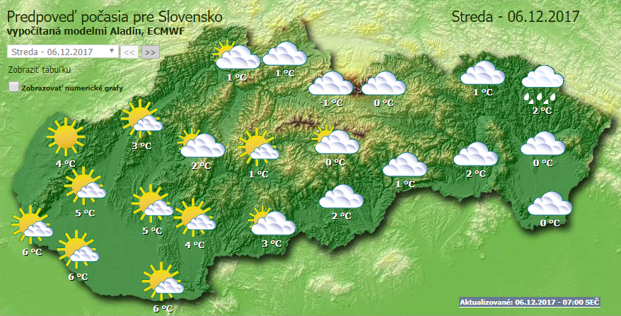 A legmagasabb nappali hőmérséklet 2 és7 fok között alakul. A gyenge délnyugati szél helyenként megélénkülhet.