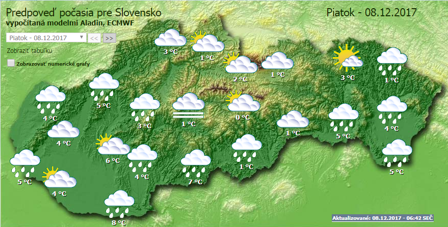 Felhős, borult és csapadékos időjárásra számíthatunk az ország legnagyobb részén. Több helyen fordulhat elő eső, a déli-járásokban talán csak Dunaszerdahely lehet kivétel a Szlovák Hidrometeorológiai intézet előrejelzése szerint.