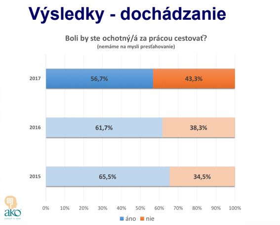 A csökkenő munkanélküliséggel csökken a munkahely utáni utazási hajlandóság is a szlovákiai munkavállalók körében. Legalábbis ezt mutatja a HR Aliancia által megrendelt AKO-felmérés.