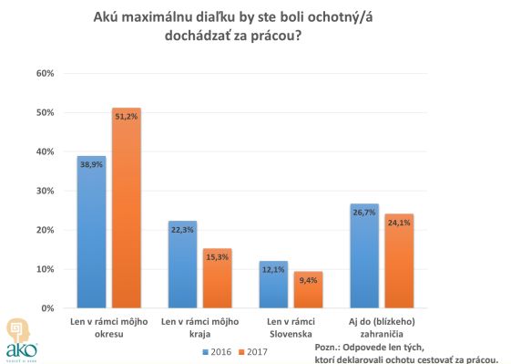 Hajlandó lenne utazni a munkáért? Kékkel igen, narancssárgával nem, forrás: aktuality.sk