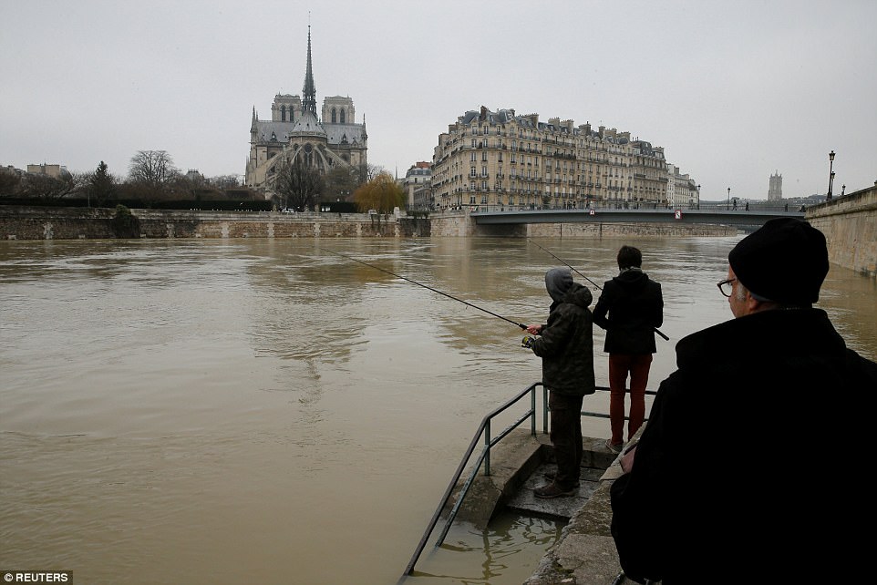 A párizsik megpróbálják hasznukra fordítani az áradást, rengetegen vették elő a horgászbotjukat, hogy a járdáról pecázzanak…