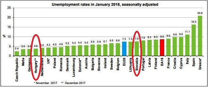 Az Unióban 8,6, Magyarországon 3,8 százalék, Szlovákiában 7,5 százalékos a munkanélküliség.