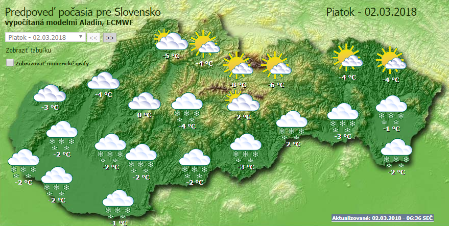 A gyenge délnyugati szél Szlovákia déli és középső részén megélénkülhet (5-25 km/óra).
