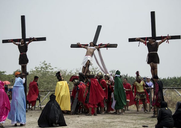 Nagypénteken a Fülöp-szigeteken három katolikus hívő szimbolikusan – Jézus Krisztus példáját követve – keresztre feszíttette magát. Az egyik helyi résztvevő már 32. alkalommal abszolválta ezt a kontroverz helyi húsvéti rítust – tájékoztatott AP ügynökség.
