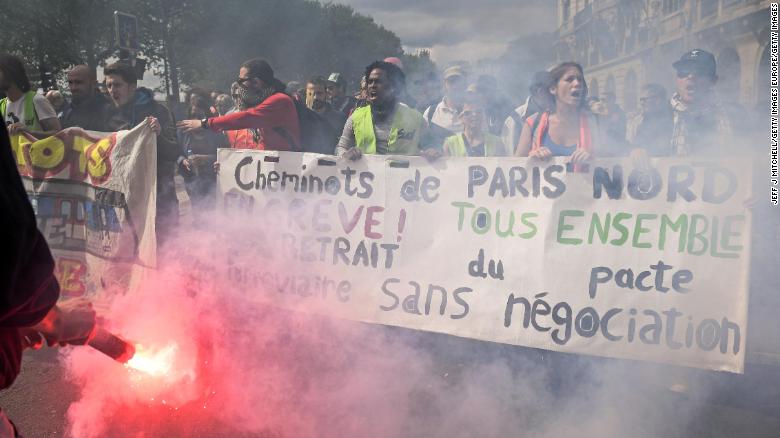 Tegnap a baloldali és szélsőbaloldali tüntetők Emmanuel Macron francia elnök munkatörvénykönyv-módosításai miatt vonultak utcára, amely a munkáltatók javára módosítaná a jogszabályokat, növelni a munkahét óraszámát. Ám más sok kritikát kiváltó intézkedés is kilátásba került, például az állami vasúti dolgozók előjogainak (pl. kedvezményes nyugdíj) eltörlése.