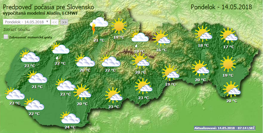 Napos, közepesen felhős időre számíthatunk az ország legnagyobb részén, főleg a déli járásokban. Az északnyugati járásokban több felé fordulhat elő zápor, zivatar. A napi csúcshőmérséklet azonban valamelyest mérséklődik, hétfőn 19 és 24 fokra számíthatunk napközben.
