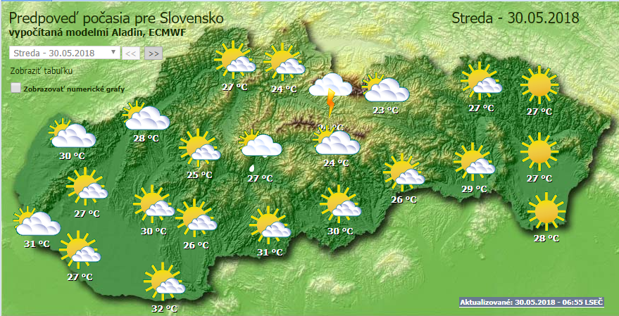 Közepesen felhős, többnyire napos idő várható szerdán, 27 és 32 fok körüli csúcshőmérsékletekkel. A nyári időjárást csak elvétve szakítja félbe egy-egy gomolyfelhő, futó zápor, zivatar.
