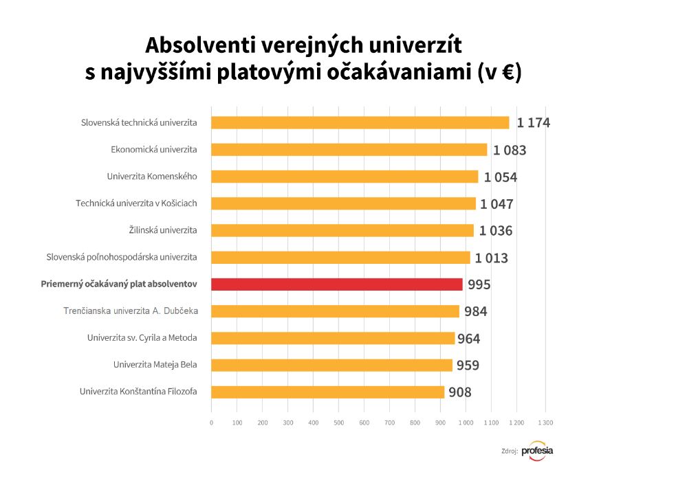 Jelen esetben a pozsonyi Szlovák Műszaki Egyetem, a Pozsonyi Közgazdasági Egyetem, a pozsonyi Comenius Egyetem, a Kassai Műszaki Egyetem, a Zsolnai Egyetem, valamint a Szlovák Mezőgazdasági Egyetem végzőseiről van szó. Az eredmények a Profesia portál legfrissebb adataiból származnak.