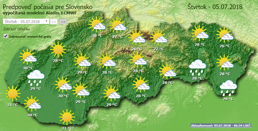 Cirill és Metód napján is marad a napos idő, helyenként azonban megnövekedhet a felhőzet. A délutáni órákban nyugaton záporokra, viharokra lehet számítani. A legmagasabb nappali hőmérséklet 28 és 33 fok között alakul. A hegyekben, 1500 méteres magasság felett 18 fok lesz. Változó, 20 km/órás szél várható, amely a viharok során felerősödhet.