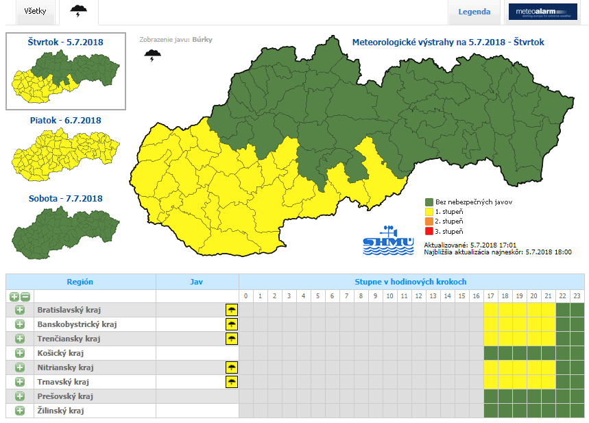 Csütörtök késő délutánra a Szlovák Meteorológiai Intézet elsőfokú riasztást adott ki több járásra az ország észak-nyugati és közép-déli részében.