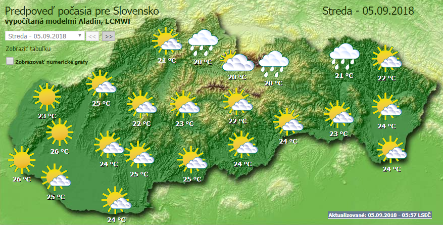 Továbbra is marad a változóan felhős égbolt. Az ország keleti és középső részén helyenként záporokra, elszórtan viharokra lehet számítani. Reggel ködre és borult időre ébredhetünk. A legmagasabb nappali hőmérséklet 22 és 27 Celsius-fok között alakul, míg az ország északi részén 20 fok lesz. A hegyekben, 1500 méteres magasságban 12 fokot mérhetünk. Az ország nyugati és keleti részén 10–25 km/órás északi szél várható, amely a viharok esetén felerősödhet.