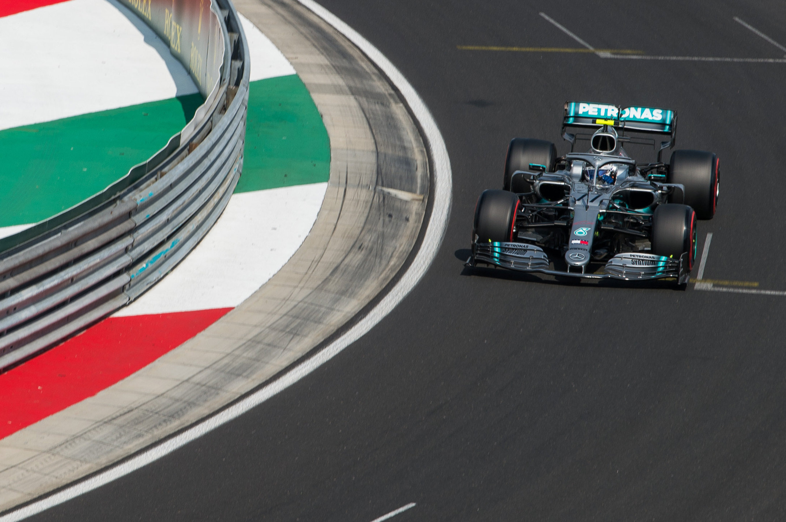 Valtteri Bottas, a Mercedes finn versenyzõje a Forma-1-es Magyar Nagydíj idõmérõ edzésén a mogyoródi Hungaroringen 2019. augusztus 3-án.