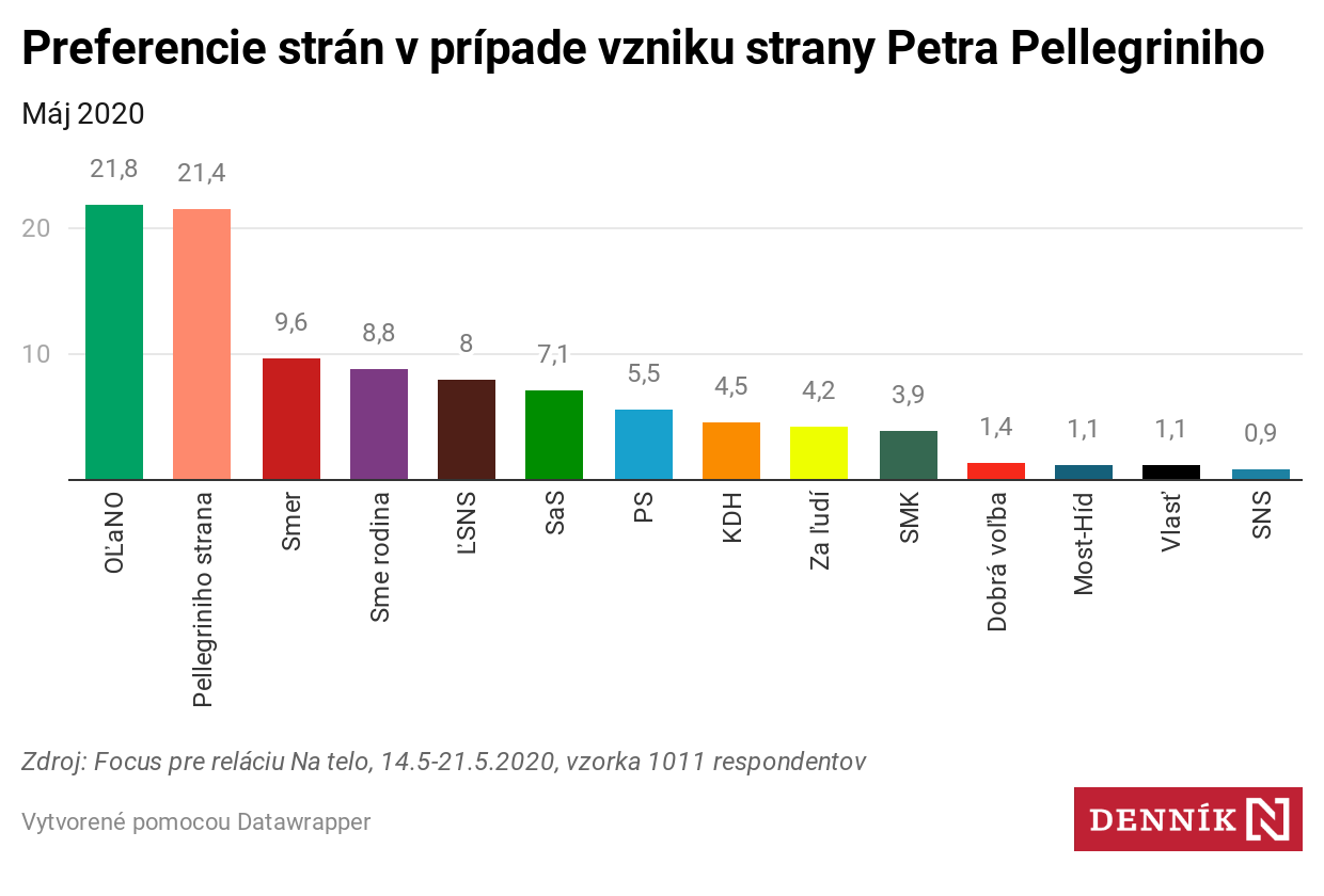 Amennyiben Peter Pellegrini úgy döntene, hogy új pártot alapít, megelőzné a Smert és Igor Matovičék mögött a második helyen végezne.