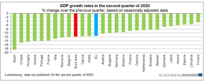 A második negyedévben a valaha regisztrált legnagyobb mértékben esett vissza a foglalkoztatás az euróövezetben és az EU-ban egyaránt az Európai Unió statisztikai hivatala, az Eurostat keddi jelentése alapján.
