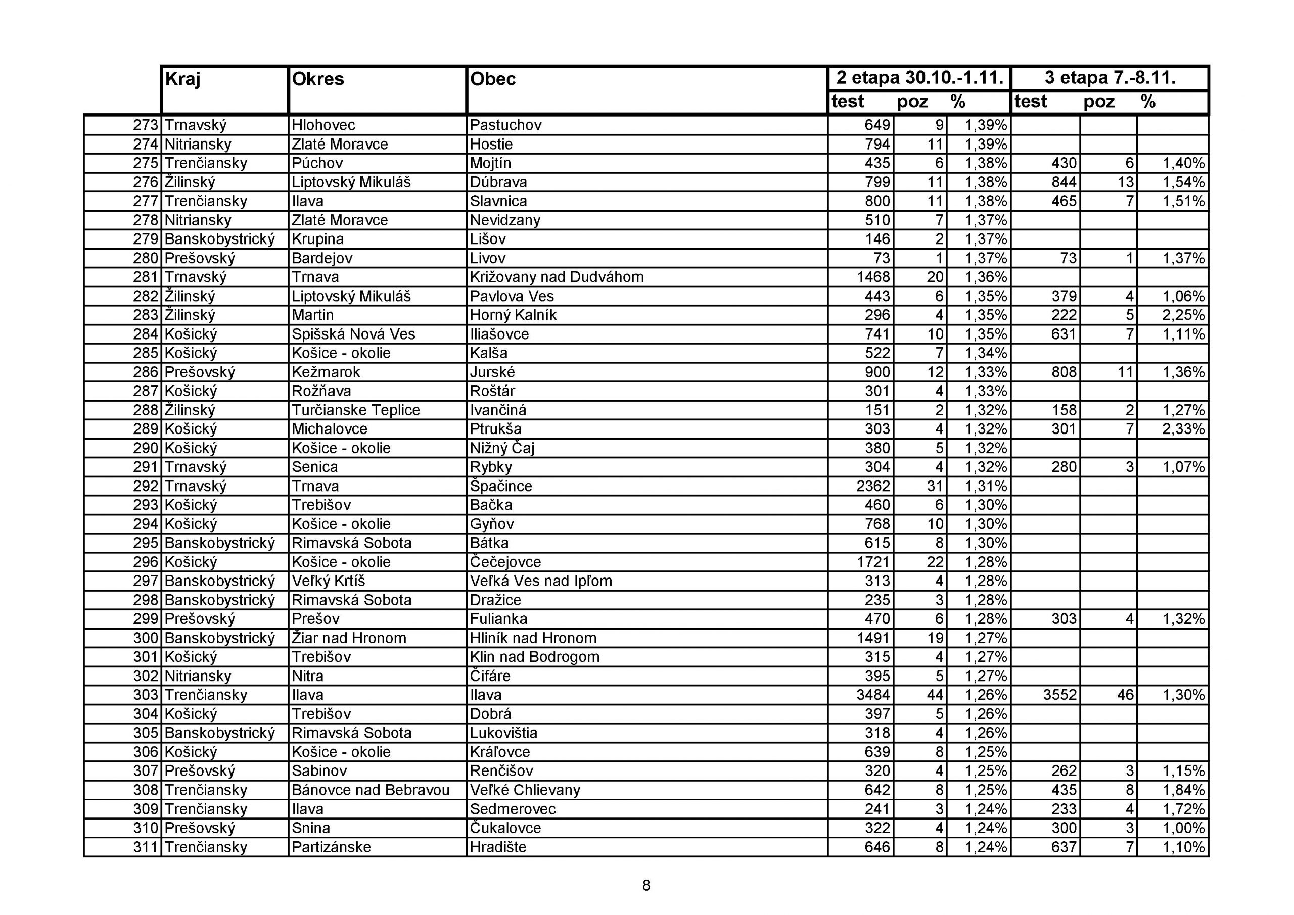 A Dunaszerdahelyi járásban 5, a Komáromiban hat helyszínen ismétlik meg a most már teljes mértékben önkéntes tesztelést. De a Nagykürtösi járásban is több magyarlakta faluban lesz tesztelés, például Ipolynagyfalun, Ipolykeszin, Szécsenkén. A Szenciben például Hegysúron, a Galántaiban Nádszegen, aLévaiban Felszőszemeréden és Tompán, a Rimaszombatiban például Bátkán.
