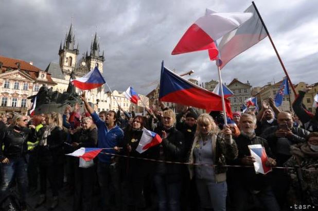 A járványellenes intézkedések ellenzői vasárnap délután gyűltek össze a Vencel téren és az Óváros téren, majd innen a Petřín felé indultak.