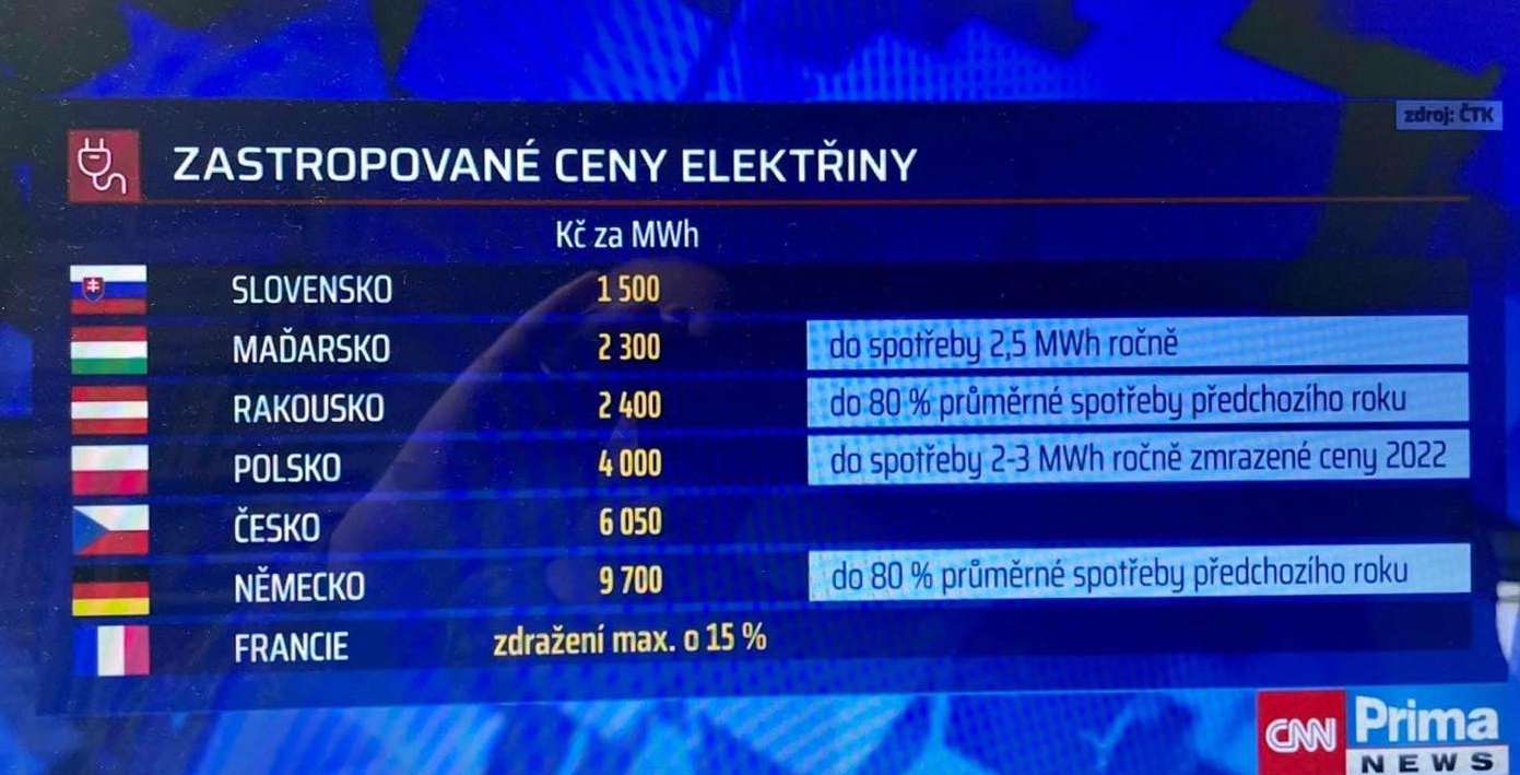 Ezek szerint egy megawattóra villany áráért Szlovákiában 1500 cseh koronát, Magyarországon pedig 2300 cseh koronát kell fizetni (Magyarországon 2,5 MWh-ig maximalizálták a kedvezményes villany árát.)
