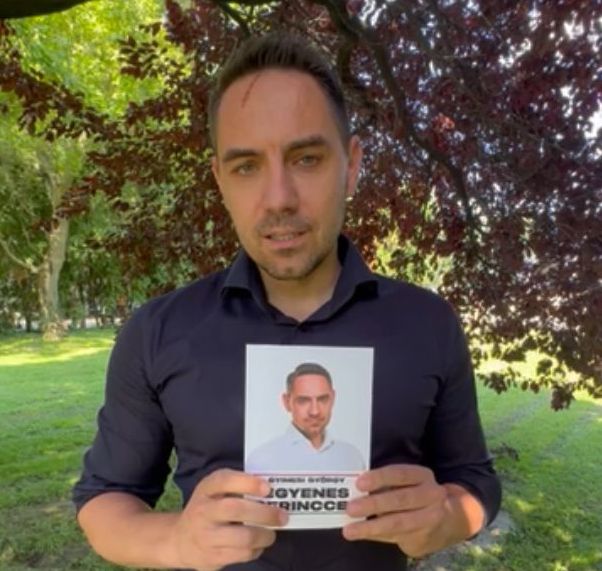 A Gyimesi – ez olvasható a Szövetség 18-as választási listájának 149. helyén induló parlamenti képviselőjelölt óriásplakátjain.