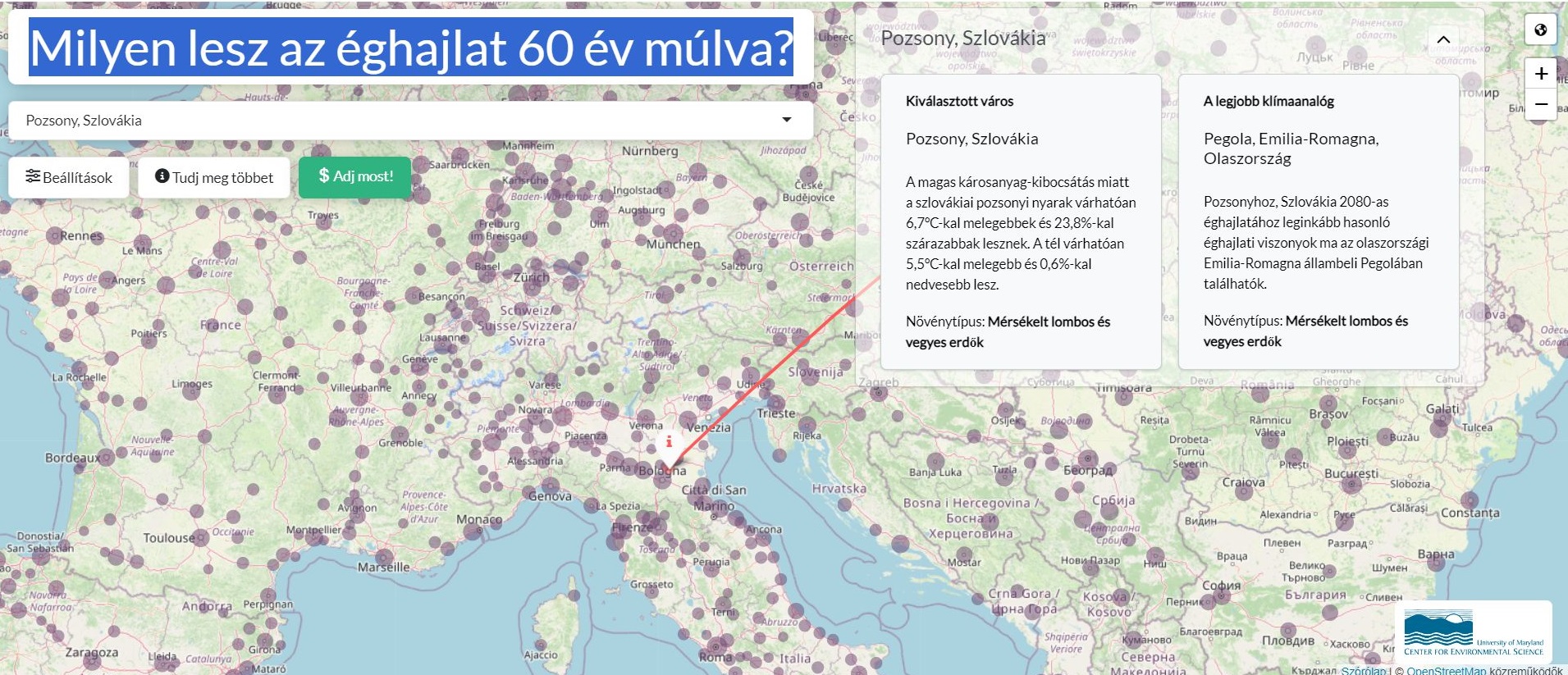 A szakember célja a térképpel, hogy bemutassa, mi várható az éghajlatváltozás terén 2080-ig. A térképet megnyitva be kell írni annak a településnek a nevét, melynek jövőbeni éghajlatára kíváncsi – az oldal pedig egyrészt kifejti, milyen lesz ott a tél és a nyár 2080-ban, másrészt párosítja is egy olyan településsel, melynek a jelenlegi éghajlatához viszonyítható a jövő.