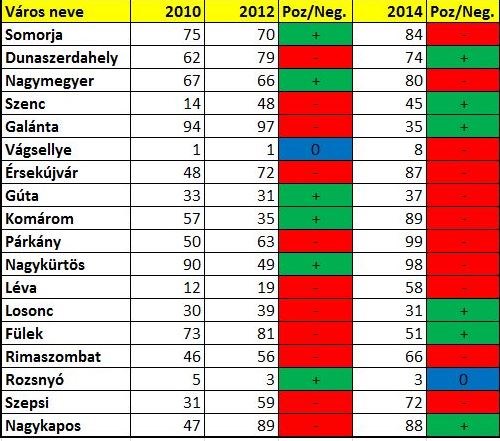 Ahogy erre az egyik facebook kommentelőnk felhívta a figyelmet, érdekes mutató az is, mennyiben változott az átláthatóság mértéke az adott településeken a korábbi évekhez képest. 2010, 2012 és 2014 összehasonlításában. Ezt is elkészítettük.