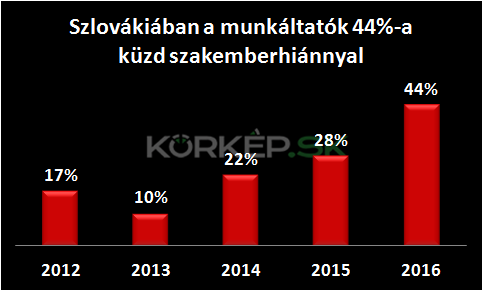 A felmérésből kiderült, hogy szlovákiai munkáltatók közel fele, vagyis 44 %-a küzd a megfelelő munkaerő hiányával. Szlovákia esetében drasztikus növekedésről van szó, míg 2013-ban a munkáltatók 10 százalékánál, addig 2015-ben 28 százalékuknál, 2016-ban pedig már 44 százalékuknál merült fel problémaként a szakemberhiány.