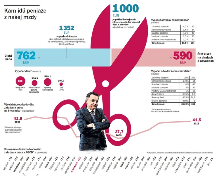 Ezzel a teljesítménnyel Szlovákia az OECD országai közül a magas adóterheket kivető államok közé tartozik. Az adóterhek (vagy hivatalos megnevezéssel élve, az adóék) Szlovákiában jóval magasabb, mint az OECD-átlag. Leelőzzük például Luxemburgot, Észtországot, Hollandiát, Dániát és Norvégiát is (fontos hangsúlyozni, munkát terhelő adókról és járulékokról beszélünk). Ellenpélda is van. A kifejezetten jó foglalkoztatási adatokkal rendelkező Magyarország például a harmadik legnagyobb adóékkel rendelkezik.