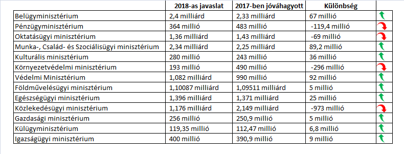 Hogy melyik tárca mekkora keretből gazdálkodhat a következő évben, azt az alábbi táblázat mutatja be. Érdekesebb azonban összehasonlítanunk, hogy mekkora részt kapnak az egyes tárcák párthovatartozás szerint a tortából.