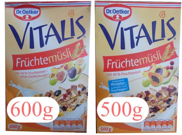 A német „Az év átverő csomagolása“ nevet viselő fogyasztói ankétban nyilvánosan kipellengérezik azokat a gyártókat, akik átverik a fogyasztókat. Az idei jelöltek között ott van a Dr. Oetker müzlije is, melynek a tömegét a gyártó 100 grammal csökkentette, ám az árán mit sem változtatott. A müzli titkos tömegcsökkentésével a termék esetében 20 százalékos árnövekedést figyelhetünk meg.