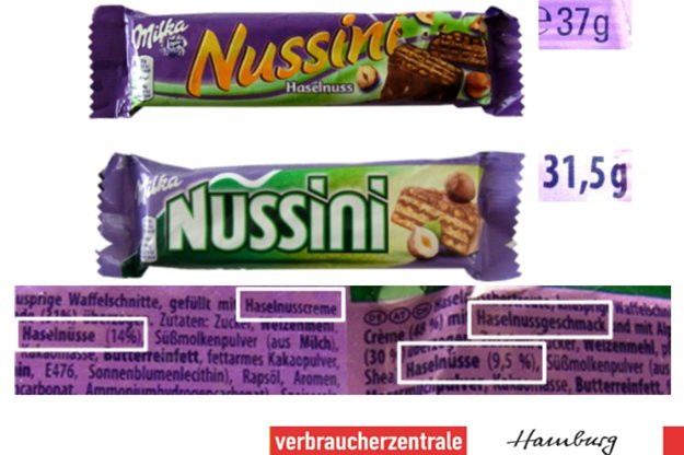 A Mondelēz gyártó is csökkentett a tömegen. A Nussini keksz 6 grammal lett könnyebb: a 37 grammos kekszet 31,5 grammosra változtatták . Mivel a gyártó ötféle csomagolásban árulja a kekszet, ezért összesen 257 grammos tömegcsökkenésről beszélhetünk. Mivel az ár nem változott, ezért a vásárló 18 százalékkal fizet többet a megvásárolt kekszért.