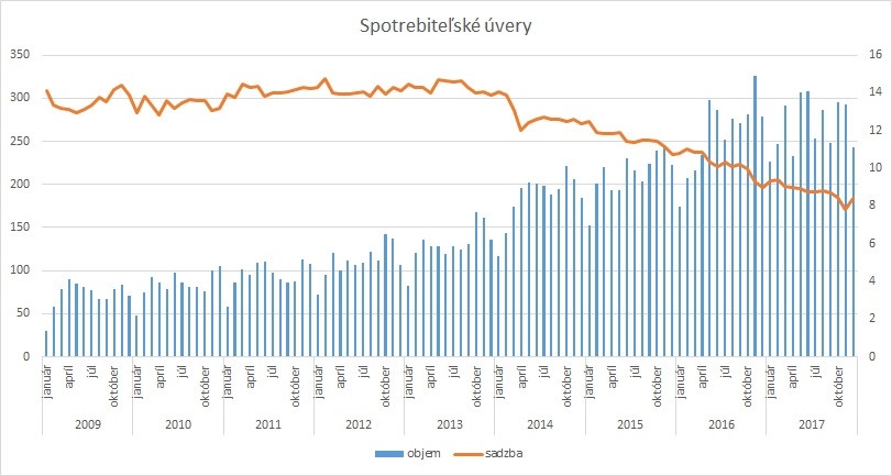 Tavaly összesen 3,2 milliárd eurónyi fogyasztási hitelt vettek fel a bankoktól a szlovákiai lakosok. Ez 2009-es összeggel összehasonlítva háromszoros (!) növekedést jelent. Máshonnan megközelítve: minden egyes férfira, nőre és gyerekre csaknem 600 eurónyi új hitel jutott 2017-ben.