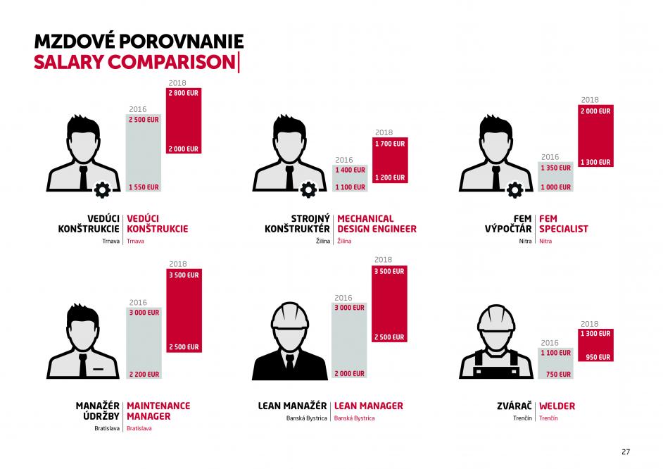 A növekvő verseny felnyomja a béreket. Egy gépgyártó szakmunkás kezdő fizetése 2016-ban 1100-1400 euró között mozgott, idén ez 1200-1700 euróra emelkedett. Egy vezető gépbeállító tavalyelőtt még 1550-2500 eurós bruttó kezdőfizetésre számíthatott, mára ez 2000-2800 euróra emelkedett. ű