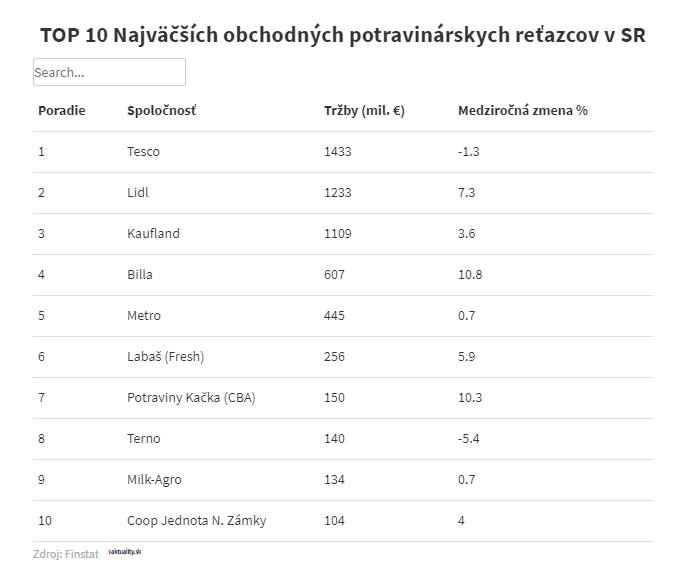 A tavalyi év bebizonyította, hogy a brit Tesco üzletlánc elvesztette dominanciáját Szlovákiában. A szlovákiai piac legnagyobb kereskedőjének jócskán csökkent a bevétele múlt évben– mindez abból a ranglistából derült ki, amit az Aktuatliy.sk az egyes vállalatok pénzügyi kimutatásai alapján készített el.