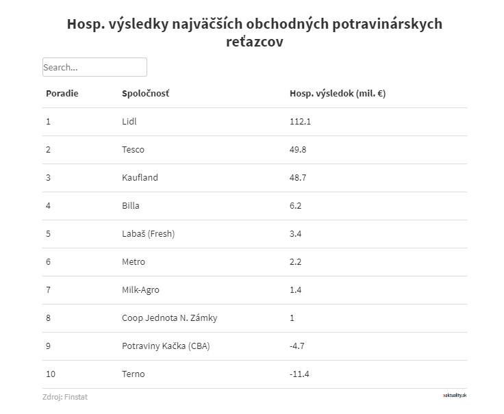 Tavaly a Billa szekere is jól ment, ugyanis ő érte el leggyorsabb az éves forgalomnövekedést (10,8%). Vlamivel kisebb növekedést jegyezett a Kačka Élelmiszerüzlet (az egykori CBA boltjai). Annak ellenére, hogy az üzletlánc bevételei több mint 10%-kal nőttek, a tulajdonosai mégis javaslatot tettek a csődeljárás beindítására.
