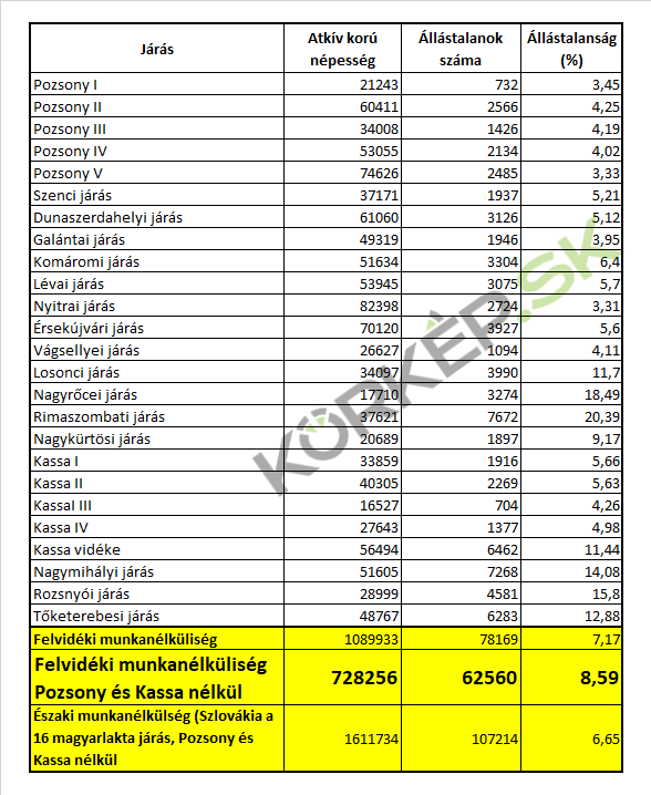 Címkék: állástalanság Felvidék felvidéki munkanélküliség gazdaság magyarlakta járások munkanélküliség Szlovákia