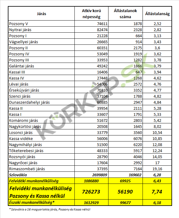 Címkék: állástalanság felvidéki munkanélküliség gazdaság magyarlakta járások munkanélküliség Szlovákia