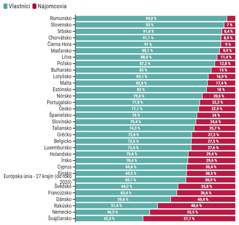 Szlovákiában egyébként szintén növekszik az albérletet választók aránya, ennek oka elsősorban az ingatlanpiaci helyzet, a drága jelzáloghitelek és a magas ingatlanárak. Mindez azt okozza, hogy a polgárok egy része emiatt inkább az albérletet válassza.