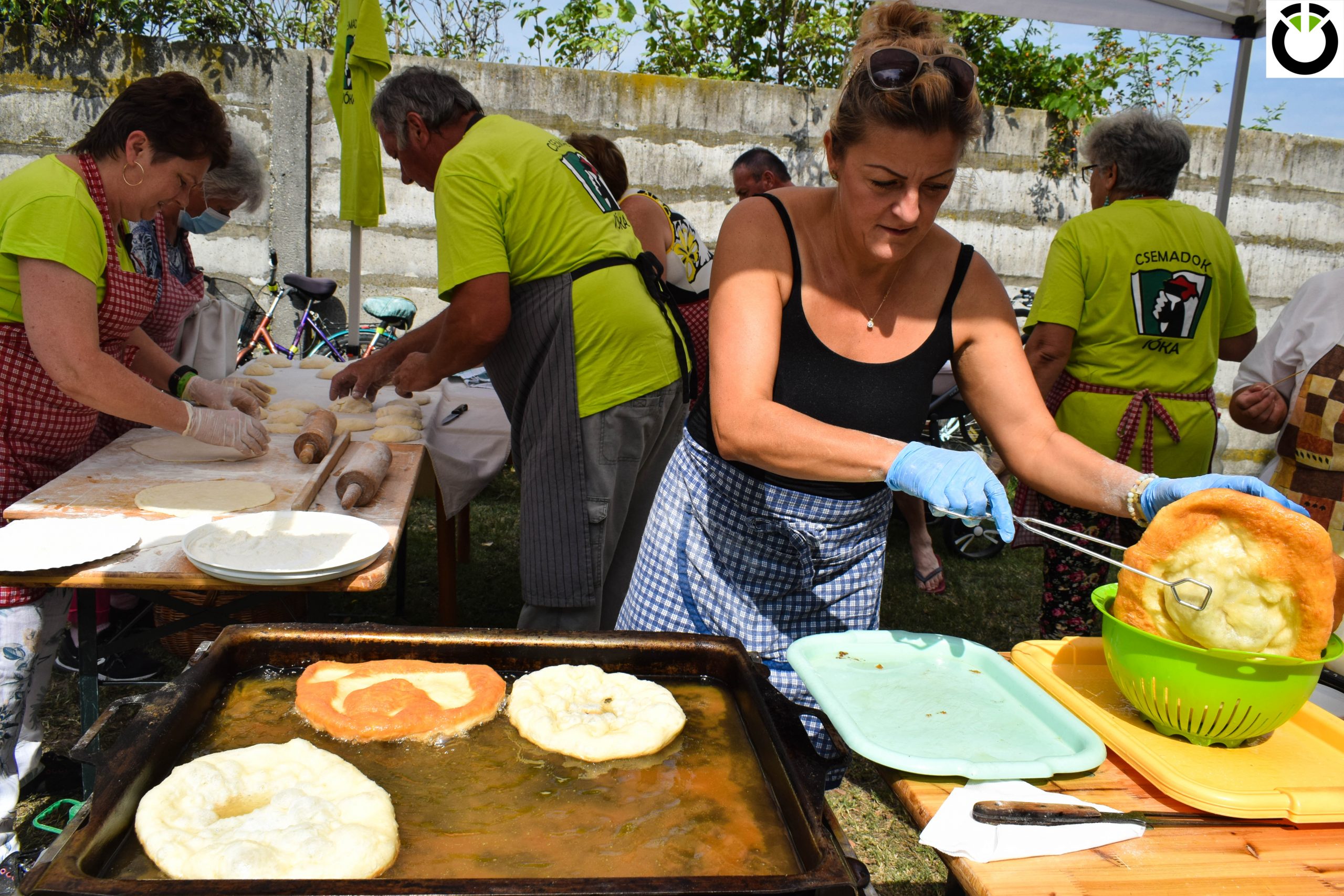 A főzésre készülők hamar berendezkedtek a „kinti konyhában”. Előkerültek az alapanyagok, felhevítették az olajat, a zsírt, s használatra kész konyhai eszközök kerültek az asztalokra. Rövid idő alatt megkezdődött a lelkes főzőcskézés.