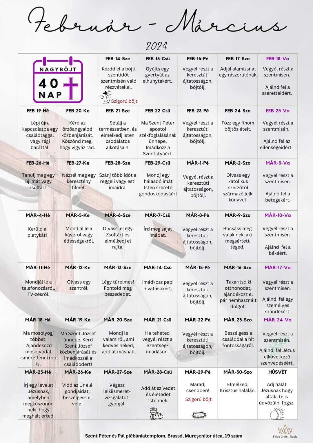 Parák László bősi esperes-plébános a február 14-i szentmise bevezetőjében rámutatott arra, hogy a szent negyven nap a lelki megújulás, egyúttal megtisztulás időszaka. Hangot adott reményének, kívánságának is, miszerint a nagyböjt