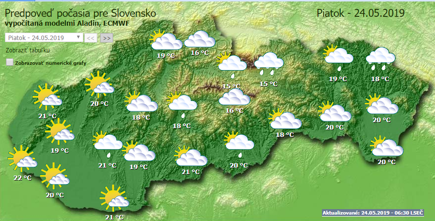 A legmagasabb nappali hőmérséklet 17 és 22 Celsius-fok között alakul. Zsolna megyében, a Felső-Garam mentén és északkeleten 15 Celsius-fokot mérhetünk. Az északi szél továbbra is élénk marad (10–30 km/h).