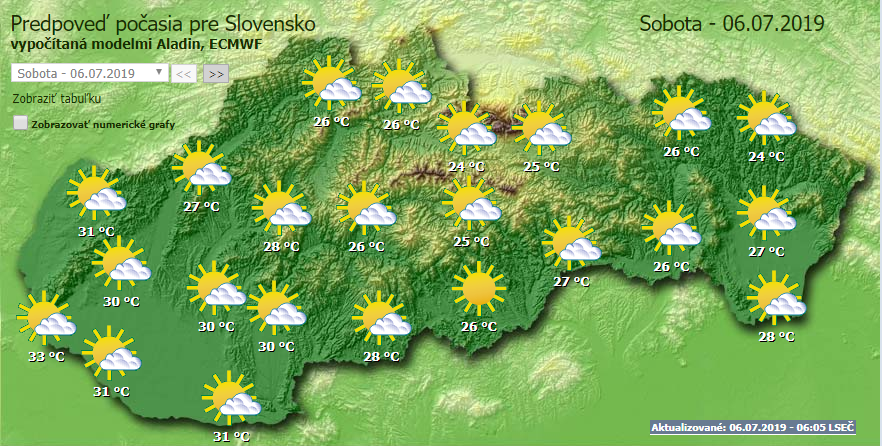 Árván, a Tátra alatti vidéken és az Eperjesi kerületben 27 Celsius-fokig emelkedik a hőmérő higanyszála. Reggel gyenge, napközben pedig 5–25 km/órás délnyugati szél várható.