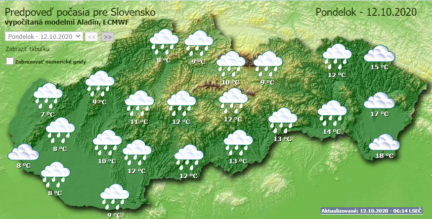 Erősen felhős, borult idő várható hétfőn. Országszerte esőre, záporesőre, a Tátra hegyvonulatain pedig havazásra lehet számítani. Nyugat- és Közép-Szlovákiában a kiadós esőzések mellé lehűlés is párosul.