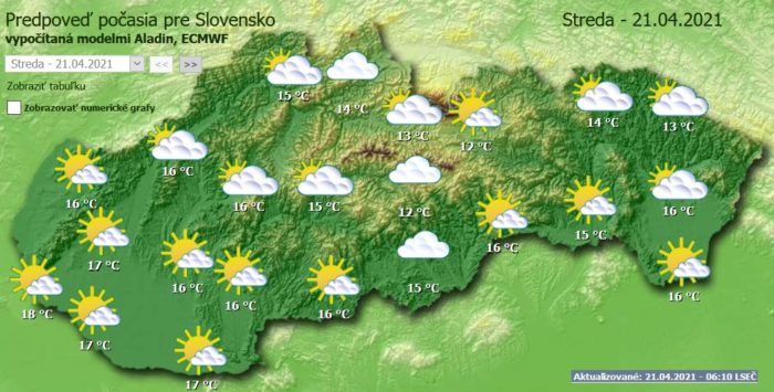 Szerdán a változó napos-felhős időben több helyütt záporok, zivatarok várhatóak. A reggeli órákban az alföldön kisebb talajmenti fagy sem kizárt. Napközben a kezdeti -2 és 6 fokról 11 és 18 fok közé emelkedik a hőmérő higanyszála, a legmelegebb a délnyugati országrészben lesz.