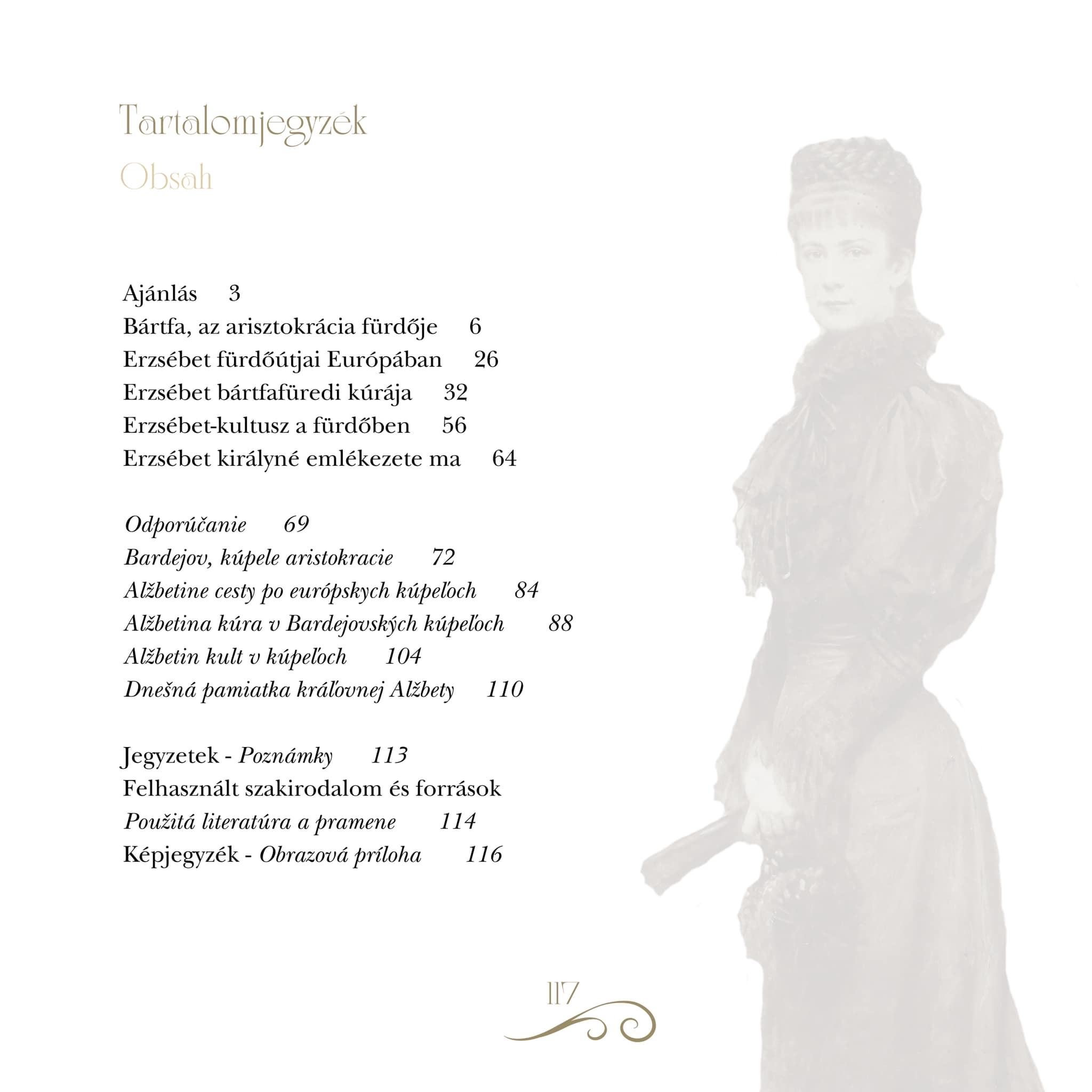 Az elegáns és dekoratív kivitelezésű kötet az 1895-ös évbe röpíti vissza az olvasót, mikor is Sisi 3 héten át Bártfán pihente ki a bécsi udvar intrikáit. A könyv amellett is érdekes és magával ragadó olvasmány tud lenni, hogy nem valamiféle habkönnyű és a valóságtól elrugaszkodott limonádé-irodalom terméke, hanem többéves tudományos kutatómunka eredménye.