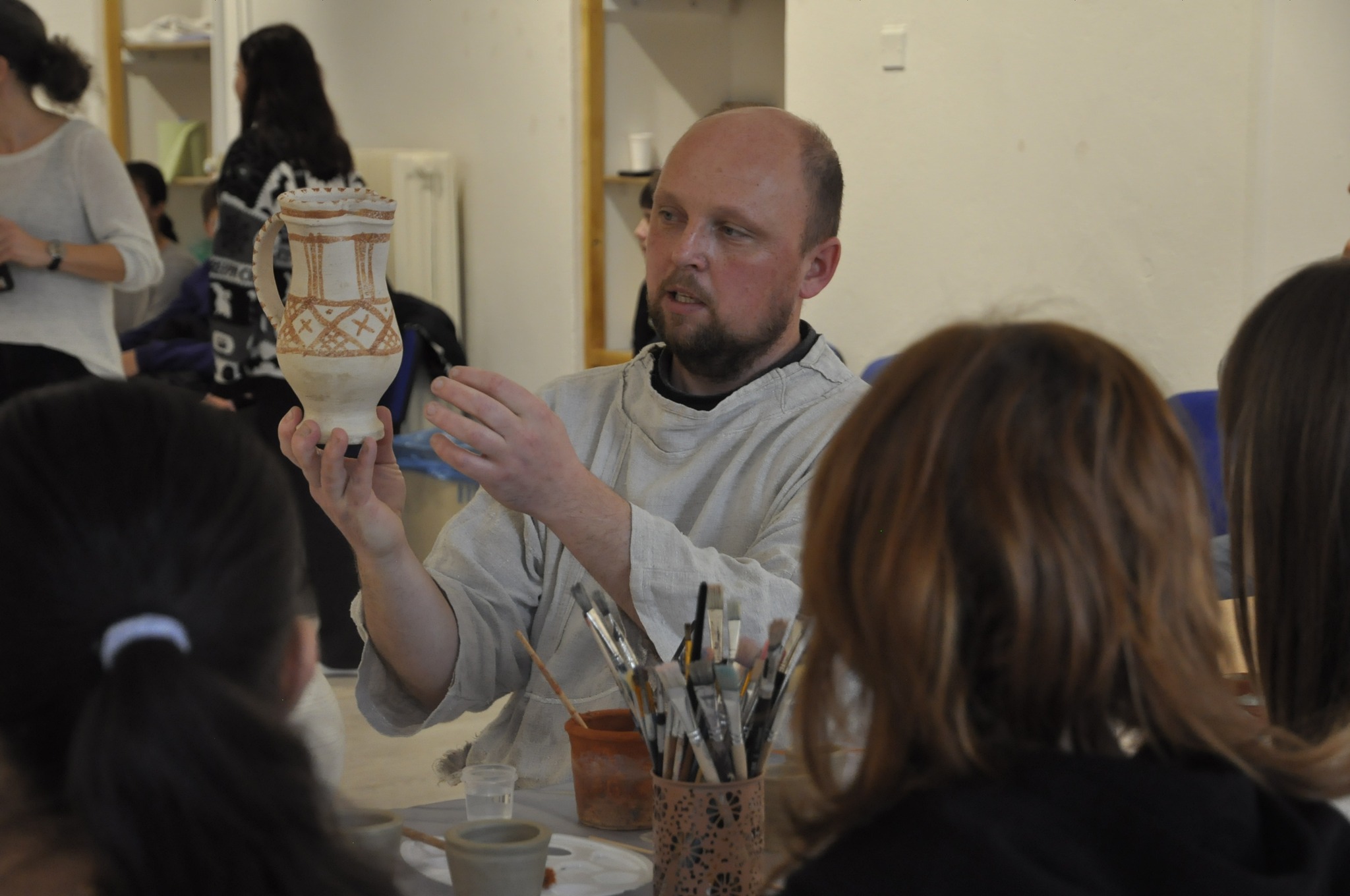 A kiállításhoz érdekes programkínálattal, kisérőrendezvények, előadások és kézművesfoglalkozások listájával is készültünk, felkelteni igyekezve minden korosztály érdeklődését. Február 15-én megvalósult középkori fazekas workshopunk Anton Drímaj vezetésével egy valóban különleges és izgalmas élmény volt a kíváncsi diáksereg számára, akik gyakorlati úton, szakértő utasításai és tanácsai mellett kóstolhattak bele a középkori fazekas mesterségébe, megalkotva életük talán első kerámiatárgyait.