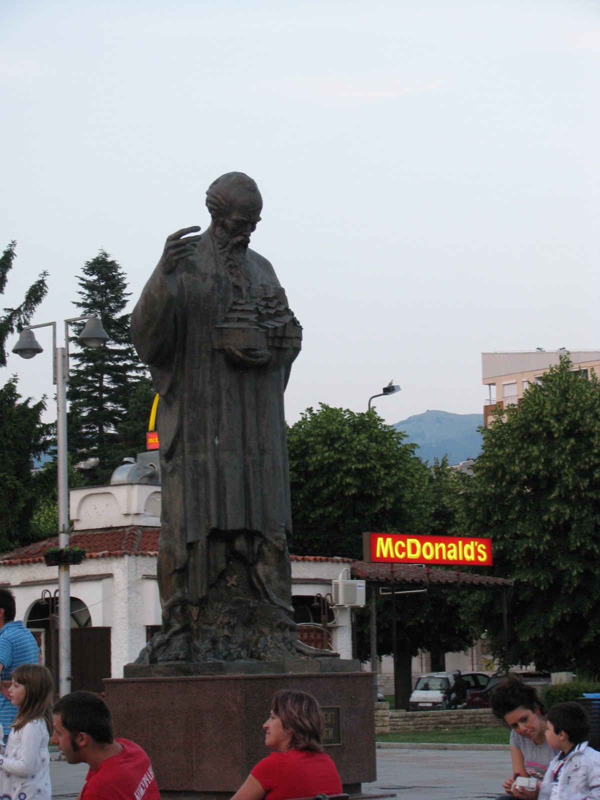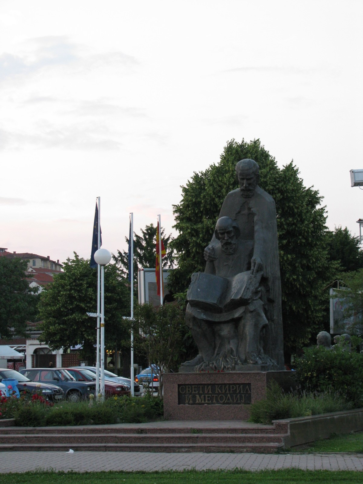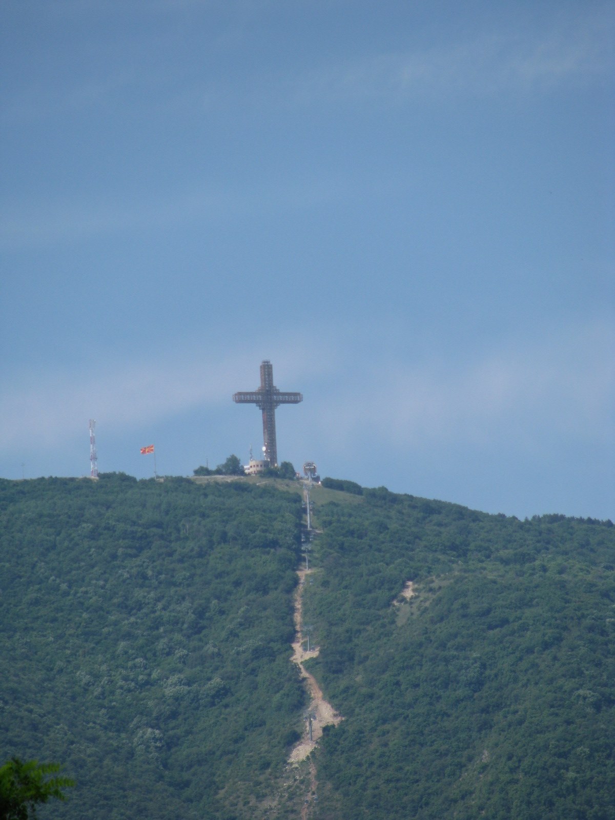 A mecsetek kompenzálása végett a macedónok minden nagyobb hegyre felhúznak egy jópár méteres keresztet, amelyeket éjjel kivilágítanak, hogy megmutassák, azért mégis milyen kultúrkörbe tartozik az ország. Itt viszont tényleg van is ok a büszkeségre, Macedónia területéről származtak az első keresztény szlávok, az ortodox vallás megalapítóinak: Szent Cirillnek és Metódnak, és az ő első követőiknek – Szent Naum, Szent Klement, és Szent Gorazd – rengeteg emlékművük található országszerte, főleg az Ohridi-tó közelében, ahol Naum és Klement elvonultan éltek kis kolostoraikban. Érdekes az, hogy bár tisztelik őket munkásságukért, nem igazán tudják, hogy merre is jártak hittéríteni …így a Nagymorva Birodalom csak homályosan, Szlovákia meg végképp nem szerepel a köztudatban …