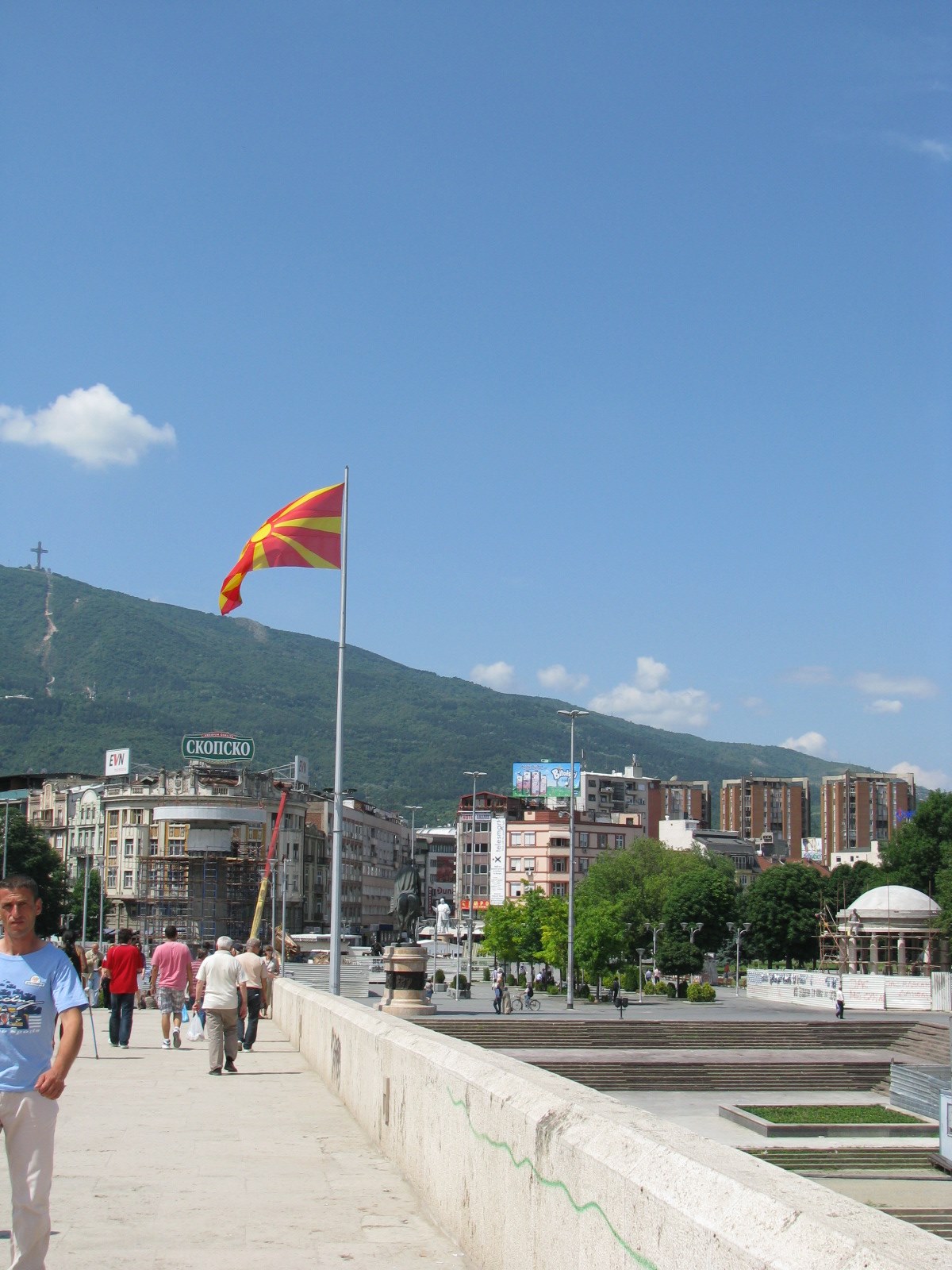 Egy kicsi volt jugoszláv köztársaság, függetlenségét 1991 szeptemberében nyerte el. A Balkán-félsziget belsejében terül el, tengerpartja, mint kiderült, nincs, viszont az ország délnyugati szélen helyezkedik el a hatalmas Ohridi-tó, amit a macedónok tengerpartként használnak. Nagyon szép és festői hely. Ez a kicsi szláv nép komoly ellenállásba ütközött a függetlenségének megszerzésekor. Konkrétan a görögök személyében. Ugye, mindenki tudja, hogy Nagy Sándor makedón származású volt, de az ókori makedónok nem tévesztendők össze a jelenkori modern macedónokkal. Ez előbbiek pásztornép volt, nem egészen ismert eredettel, míg a mostaniak egy délszláv népcsoport, amely kb. ugyanazon a területen él, mint az ókori makedónok. Na most, Görögország is magáénak gondolja a macedón elnevezést és a macedón őstörténelmet, a macedónok meg pláne. Ezen aztán rettenetesen jól és sokat elvitatkoznak.
