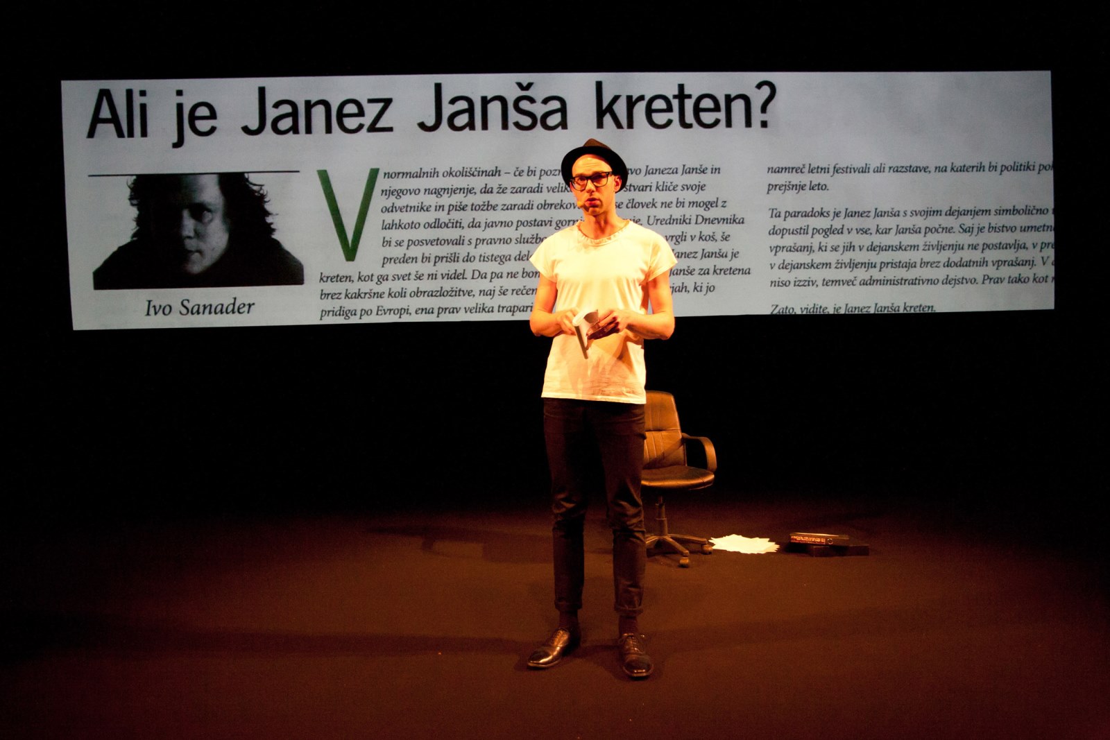 Legutoljára pedig egy szlovén darabról tennénk említést. Ha a cikk elejéről emlékezik valaki arra a mondat részletre, hogy „szlovén Janez Janša, Janez Janša, Janez Janša szerzőhármas” és elütésnek gondolta, bizony nagyot fog nézni, ugyanis az előadás mindhárom létrehozóját így hívják. Davide Grassi, és Žiga Kariž képzőművészek, valmint Emil Hrvatina rendező ugyanis 2007-ben úgy döntött, hogy bemennek az anyakönyvi hivatalba és felveszik az akkori (és 2012-ben újraválasztott) szlovén miniszterelnök nevét. A Minél többen vagyunk, annál gyorsabban elérjük a célunk című drámában azt vizsgálják, a név hogyan hat az identitásra, hogyan változott meg a saját identitásuk, hogyan reagált rá a családjuk, a barátaik, illetve azt elemzik, vajon manapság a művészek mennyire befolyásolhatják a politikai történéseket. (Összehsonlításképpen – mintha három szlovák művész felvenné Robert Fico nevét, majd a tapasztalataikból írnának egy drámát – Janez Janša miniszterelnökségét is különféle nem teljesen tiszta ügyek, korrupciós botrányok és nacionalizmus kíséri-kísérte.)
