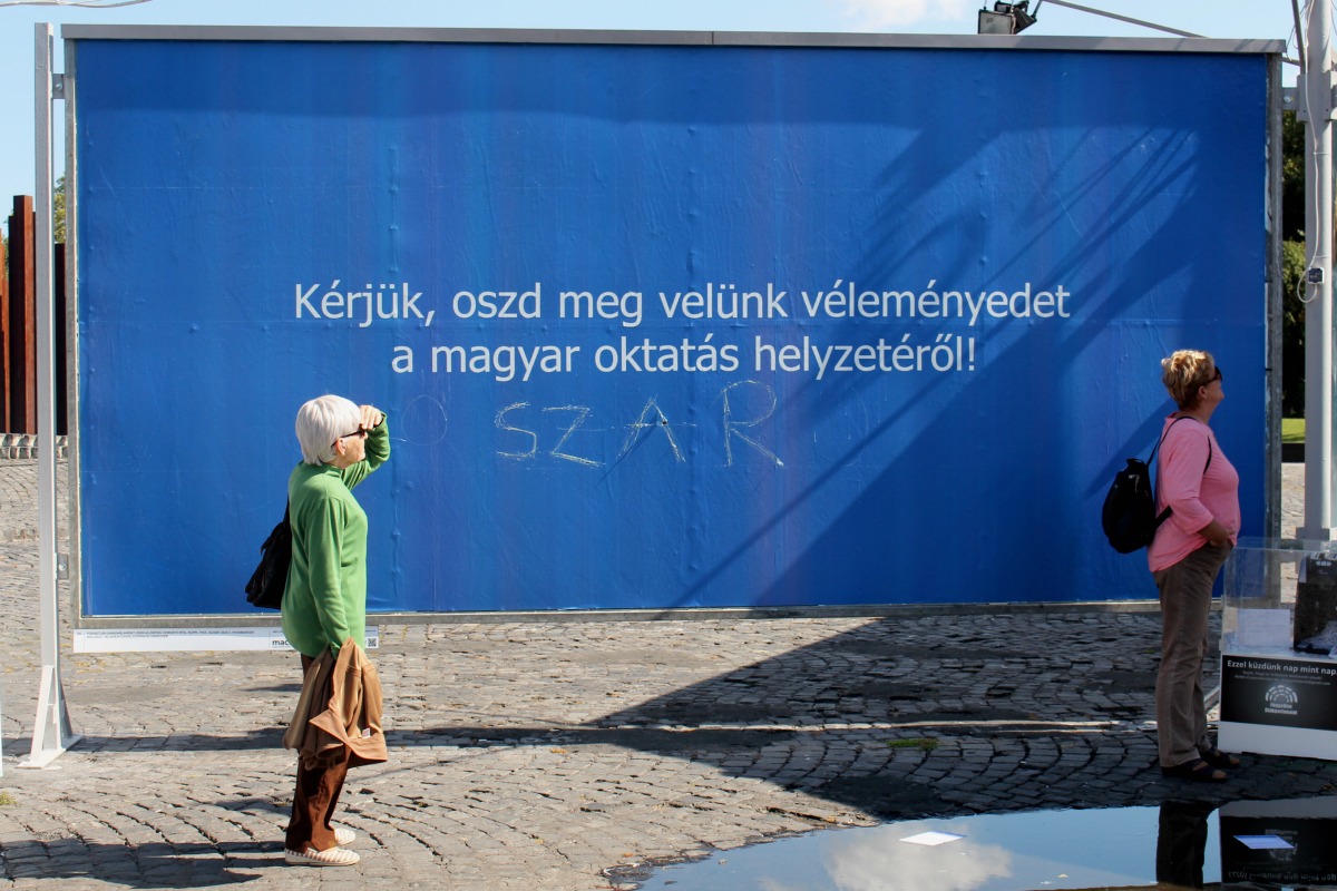 A kiállítás különösen érdekes annak fényében, hogy a magyar kormány az elmúlt években szintén szabályos plakáthadjáratot indított, csak a cél volt máshogyan népnevelő. Ez a motívum is helyet kap természetesen a kiállításon, talán a legvilágosabban az Elegem van a plakátokból! – plakát mondja ezt ki a legironikusabban. A sors különös fortélya egyébként, hogy ottjártamkor szinte az egész kiállítás körbe volt zárva kordonokkal, a hétvégén tartandó Nemzeti Vágta miatt.