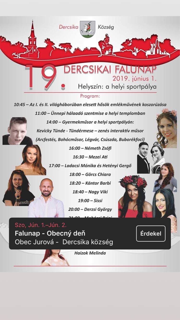 Dercsikán június 1-jén, szombaton 10.45-kor megkezdődnek a 19. Dercsikai Falunap programjai.