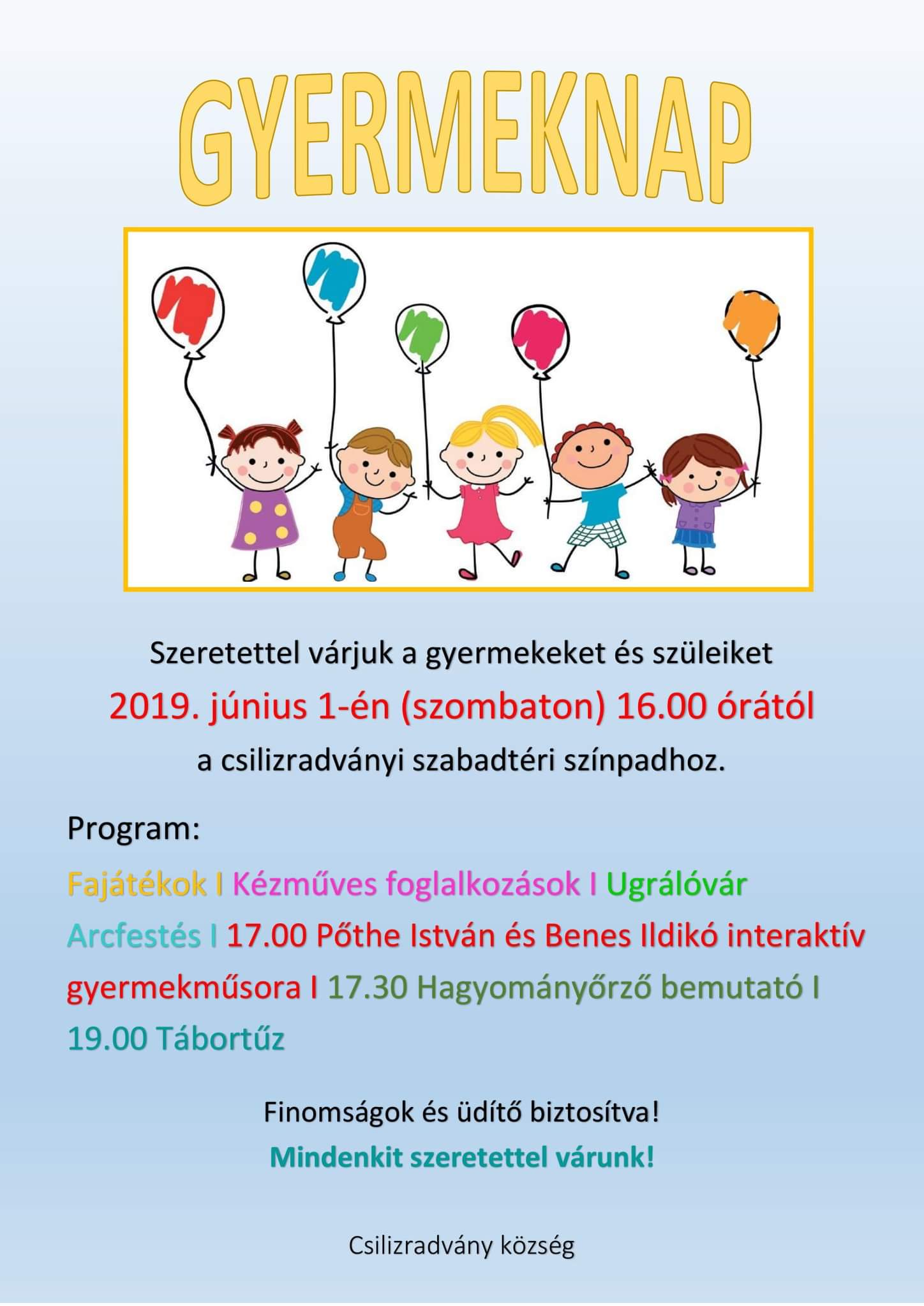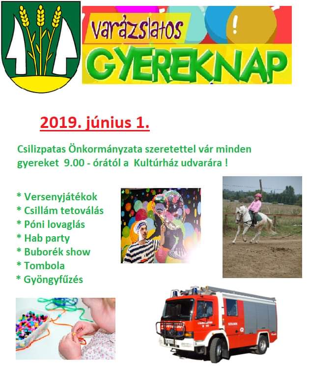 Csilizpatason június 1-jén, szombaton 9.00 órától gyermeknapot tartanak.